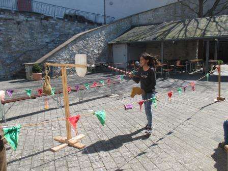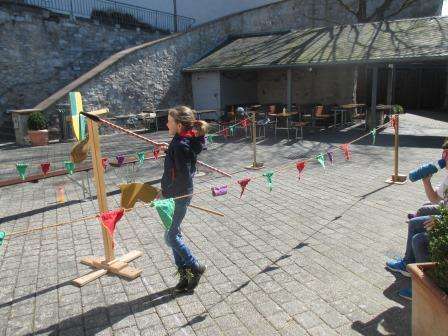 Morgens gab es um 8:00 Uhr Frühstück. Nachdem wir gemeinsam die Tische abgeräumt hatten, spielten wir mit einem Betreuer der Jugendherberge Aktivspiele wie z.B. Dosenwerfen. Dann gab es Mittagessen. Nach dem Mittagessen machten wir eine GPS-Rallye zum Abenteuerspielplatz. Anschließend hatten wir ein bisschen Freizeit. Danach gab es Abendessen und wir hatten viel Spaß bei der anschließenden Klassen-Party. Die Party endete leider schon um 21:30 Uhr.