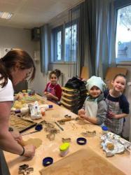 Die Kinder waren mit Feuereifer bei der Sache, zeigten viel Ausdauer und Geschick beim Verschönern der fertigen Plätzchen und hatten alle riesigen Spaß bei der ersten gemeinsamen Aktion in unserer Schulküche. Am Ende des Vormittags waren alle ganz stolz auf die leckeren Ergebnisse, die erst einmal in mehreren schönen Dosen in der Klasse aufbewahrt wurden und dann bald zum Naschen bereit stehen werden.