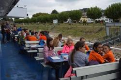 Hier lernten die Kinder zunächst in einer spannenden praktischen Stunde mit vielen Versuchen Wissenswertes über Vulkanismus und die unterirdischen Geheimnisse, die sich hinter dem bekannten Geysir auf dem Namedyer Werth verbergen. Anschließend durften sie zu einer imaginären Reise über 4000 m in die Tiefe bis in das Erdinnere aufbrechen, wo eine interaktive Ausstellung die Prozesse erlebbar machte, die zum regelmäßigen Ausbruch des Geysirs führen. Der Höhepunkt des Besuchstages war dann natürlich die Fahrt mit dem Schiff zum Namedyer Werth, wo alle staunend miterleben konnten, wie kraftvoll der höchste Kaltwasser-Geysir der Welt die Wasserfontänen bis zu 60 Meter in die Höhe schleudert! Das eisenhaltige Wasser durfte anschließend auch probiert werden, es war aber nicht unbedingt der Hit des Tages… Schließlich ging es mit dem Schiff und anschließend mit dem Bus wieder zurück nach Urmitz, wo die Kinder dann zu Hause von einem besonders spannenden und erlebnisreichen Ausflug berichten konnten.