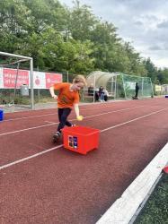 Der Zonenweitsprung, der Heuler-Weitwurf und das Medizinballstoßen boten jedem Kind die Möglichkeit, sich individuell zu beweisen. Mit zwei Versuchen pro Disziplin war jeder einzelne Auftritt entscheidend für das Gruppenergebnis. Die Aufregung stieg, als die Kinder ihr Bestes gaben und die Zuschauer sie anfeuerten!