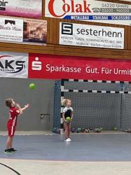 Das war wie erwartet in Urmitz gar kein Problem, denn gleich fünf aktive Handball-Eltern des SV Urmitz ließen es sich nicht nehmen, an diesem Vormittag schon frühmorgens in der Halle fünf Stationen für die Kinder der 3. und 4.Klassenstufe vorzubereiten und aufzubauen! In zwei Durchgängen –jeweils einem für die Dritt- und Viertklässler- konnten alle Kinder grundlegende Fertigkeiten des Handballspiels kennenlernen und entsprechende Übungen unter fachkundiger Anleitung der Eltern ausprobieren. Viel zu schnell ging der Schnuppertag vorbei, und was könnte die Zufriedenheit der Kinder damit besser beschreiben als die Rückmeldung eines Mädchens aus der 3a: „Das fühlt sich heute gar nicht wie Schule an!“ In der Schule gab es schließlich für alle Kinder noch als Anerkennung den „Hanniball-Pass“.