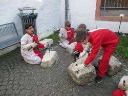 Am Montag den 24. April trafen wir uns um 8.45 Uhr auf dem Parkplatz der Peter-Häring-Halle und sind um 9.00 Uhr mit dem Bus nach Diez gefahren. Nach der Ankunft in der Jugendherberge Diez versammelten wir uns Alle auf dem großen Hof der Jugendherberge und der Herbergsvater hat uns einiges über das Grafenschloss erklärt. Danach machten wir eine Stadtrallye durch Diez. Im Anschluss an die Stadtrallye gab es Mittagessen, eigentlich wollten wir dann auf unsere Zimmer gehen und schon mal die Betten beziehen. Da sie aber noch nicht fertig waren mit dem Reinigen der Zimmer, sind wir früher ins Museum gegangen. Dort machten wir ein Quiz, wir durften die Sträflingskleidung von früher anziehen und auch die Arbeit der Sträflinge machen. Das Meißeln von Steinen war interessant. Nach der Sträflingsarbeit sind wir auf unsere Zimmer gegangen und haben die Betten bezogen. Dann gab es Abendessen und wir durften zurück in unsere Zimmer.
