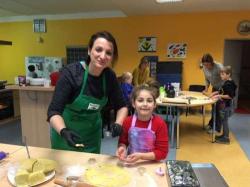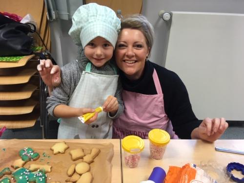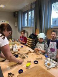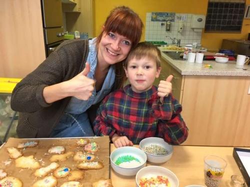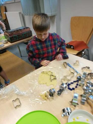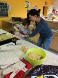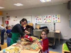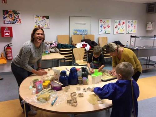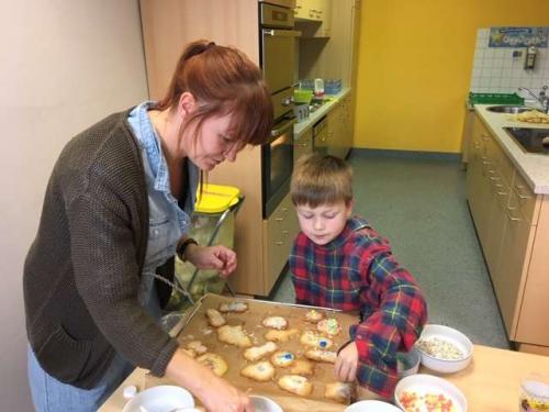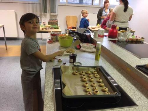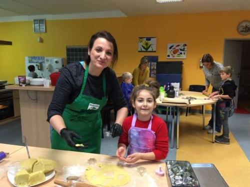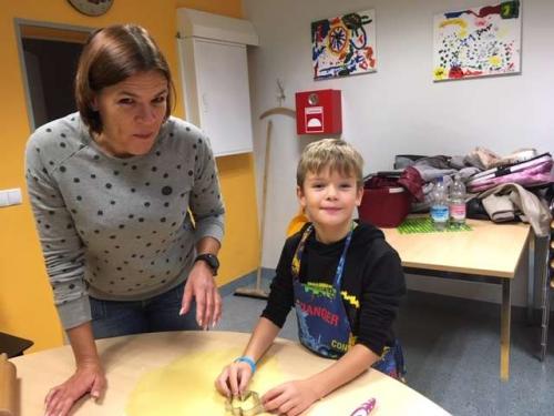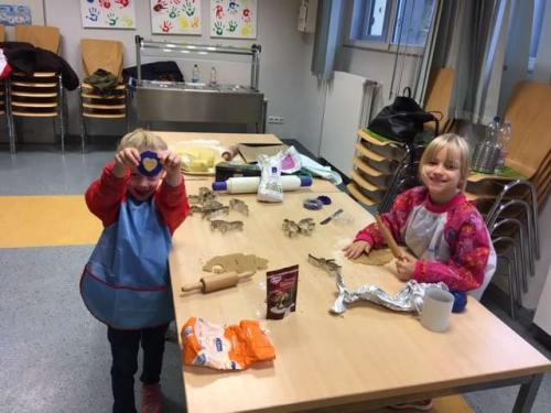 Schon Anfang November sorgten die 14 Kinder der Klasse 1a für adventlichen Duft im ganzen Schulhaus, denn an diesem Freitagmorgen war in der Schulküche Plätzchen backen mit den Eltern angesagt, und das blieb auch bald den anderen Klassen in den Etagen darüber nicht verborgen. Viele fleißige Mütter hatten alles mitgebracht, was man an Teig und an Material zum Ausstechen, Backen und Verzieren von Weihnachtsplätzchen so alles braucht.