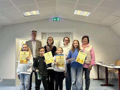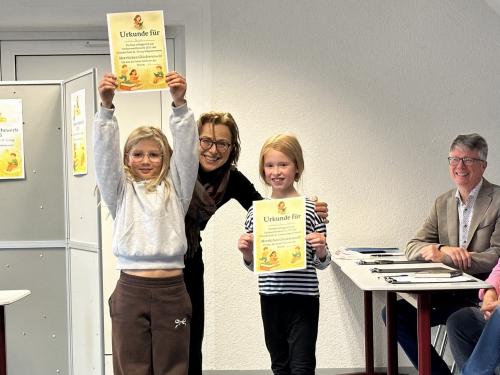 Außerdem wurden auch die jeweiligen Klassensieger der Stufen 3 und 4 geehrt: Annika Reif, Emil Feix, Emma Wagner)