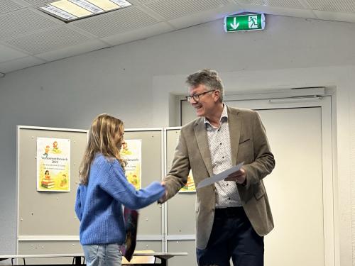 Nach intensiven und beeindruckenden Vorträgen stand schließlich fest, wer den Wettbewerb gewonnen hatte. Die Spannung in der Luft war greifbar, als die Schulsiegerin Nele Wilhelmi durch Norbert Bahl in einer kleinen Laudatio bekannt gegeben wurde.