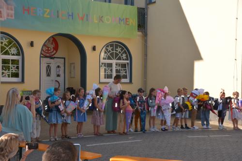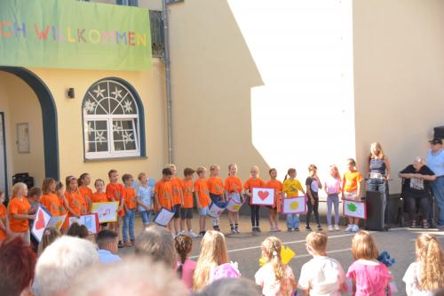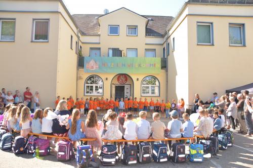 Unter einem strahlend blauen Himmel, wie es für Urmitz an solchen Tagen typisch ist, wurden 34 Erstklässler herzlich in die Schulfamilie der Grundschule St. Georg aufgenommen.