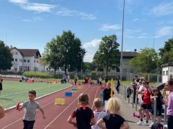Wie immer galt es zunächst in den Ausdauerläufen sieben Minute lang Tennisbälle und Bierdeckel von einer Kiste in eine andere auf der gegenüberliegenden Seite des Platzes zu verlegen. Außerdem waren mit der jeweiligen Riege eine Übung zum schnellen Laufen (Bälle sammeln), ein Hindernislauf und eine Staffel im Sackhüpfen zu bewältigen. Beim Zonenweitsprung, dem Heuler-Weitwurf und dem Medizinballstoßen konnte sich jedes Kind auch einzeln bei jeweils zwei Versuchen beweisen, die dann ins Gruppenergebnis eingerechnet wurden. Schließlich freuten sich alle ganz abgekämpft auf die Siegerehrung, bei der die Platzierungen der Riegen verkündet wurden. Eine Teilnehmerurkunde für alle Kinder mit der Riegenplatzierung gab es dann am nächsten Schultag. Ein großes Dankeschön ging auch an die vielen Eltern, die uns wieder einmal als Helfer an Stationen oder als Riegenleitung tatkräftig unterstützt haben. Viele Kinder und Eltern freuen sich schon auf das Sportfest im nächsten Jahr!