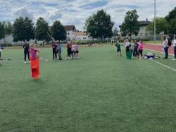Nach dreijähriger coronabedingter Pause konnten wir zum erstem Mal seit 2019 wieder unser beliebtes Vielseitigkeitssportfest anbieten! Auch das Wetter spielte zum Glück wieder mit, und so konnten sich alle Kinder in altersgemischten Riegen in den vorher gut geübten 7 Disziplinen versuchen.