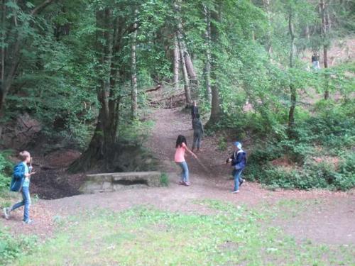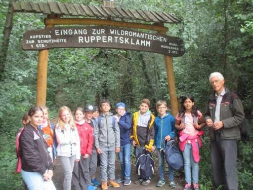 „Auf die Plätze fertig los“ dachten wir alle -aber nein- Willie erklärte uns noch etwas. Wir durften essen und trinken, aber dann ging es auch schon los zur Ruppertsklamm. Dort angekommen haben wir noch ein Gruppenbild gemacht und gingen schön gemütlich die Klamm entlang. Nach etwa 20 Minuten waren wir an der großen Grillhütte, haben etwas gegessen und sind losgerannt. Wir haben Endgame: 4a gespielt. Dieses Spiel haben wir uns ausgedacht. Nach etwa 15 Minuten ging es weiter und wir sind zu einer neuen Hütte gegangen, die sich Uhulay nannte. Dort haben wir den schönen Ausblick über die Lahn genossen.