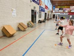 Das war wie erwartet in Urmitz gar kein Problem, denn gleich fünf aktive Handball-Eltern des SV Urmitz ließen es sich nicht nehmen, an diesem Vormittag schon frühmorgens in der Halle fünf Stationen für die Kinder der 3. und 4.Klassenstufe vorzubereiten und aufzubauen! In zwei Durchgängen –jeweils einem für die Dritt- und Viertklässler- konnten alle Kinder grundlegende Fertigkeiten des Handballspiels kennenlernen und entsprechende Übungen unter fachkundiger Anleitung der Eltern ausprobieren. Viel zu schnell ging der Schnuppertag vorbei, und was könnte die Zufriedenheit der Kinder damit besser beschreiben als die Rückmeldung eines Mädchens aus der 3a: „Das fühlt sich heute gar nicht wie Schule an!“ In der Schule gab es schließlich für alle Kinder noch als Anerkennung den „Hanniball-Pass“.